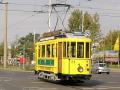 von vielen verschiedenen alten und neuen Straßenbahnen.